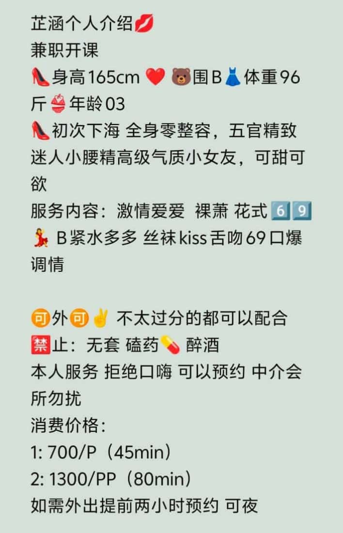 服务内容:裸萧、花式69、丝袜诱惑、kiss舌吻、口爆、枕边调情、激情爱爱~
